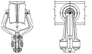 滑架:牵引链条由滑架支撑,滑架体为模锻的高碳钢件,具有很高的强度;带有大游隙全珠粒整体轴承轮,滚轮轴承由密封盖加以保护,并带有外伸式压力型润滑油嘴。滑架的排列视垂直轨道回转半径而定,协调配用。 支撑滑架有空载支撑滑架、负载支撑滑架、重载支撑滑架,有模锻和可锻铸铁两种选用。 |